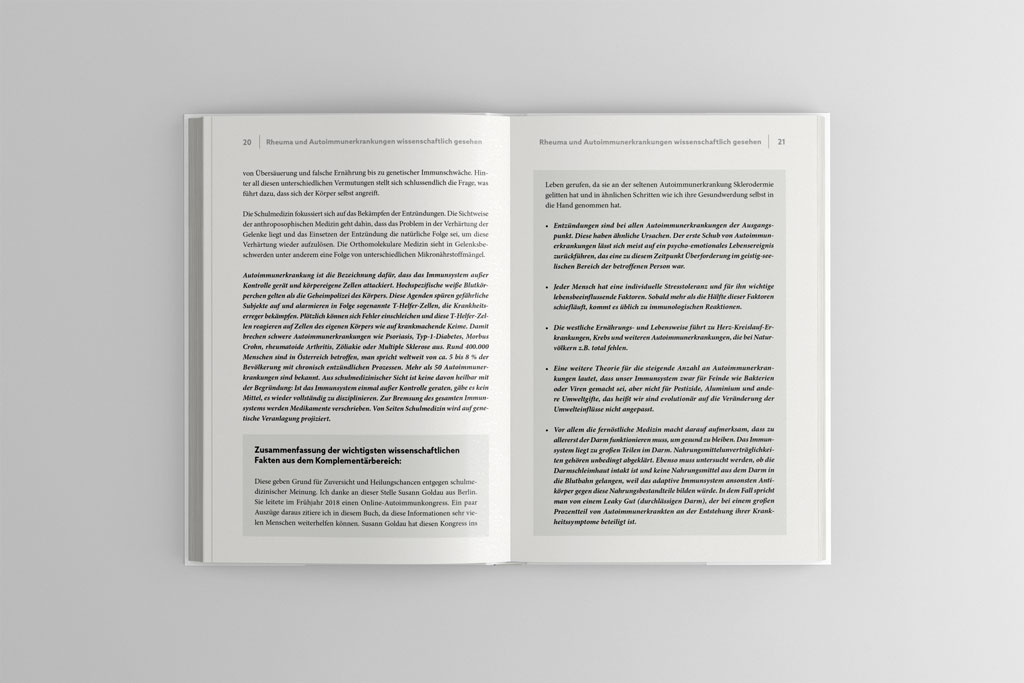 Michaela Eberhard betreibt seit Jahren private Forschungsarbeit im alternativen und komplementärmedizinischen Bereich hinsichtlich des Krankheitsbildes Rheuma. Ihre gesundheitlichen Erfolge damit lassen aufhorchen. Die Informationen sind basierend auf Erfahrungswerte und Erfolge, die belegbar sind. Als Ergebnis sind daraus Publikationen u.a. in Zusammenarbeit mit entsprechenden Fachpersonen entstanden.